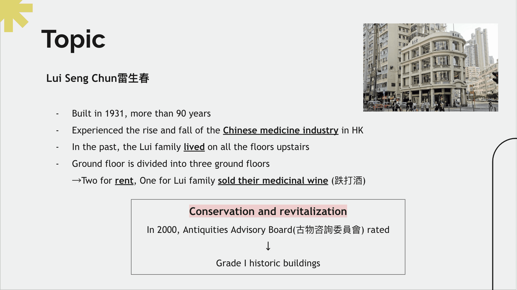 Culture project (Revitalization of Lui Seng Chun Heritage)