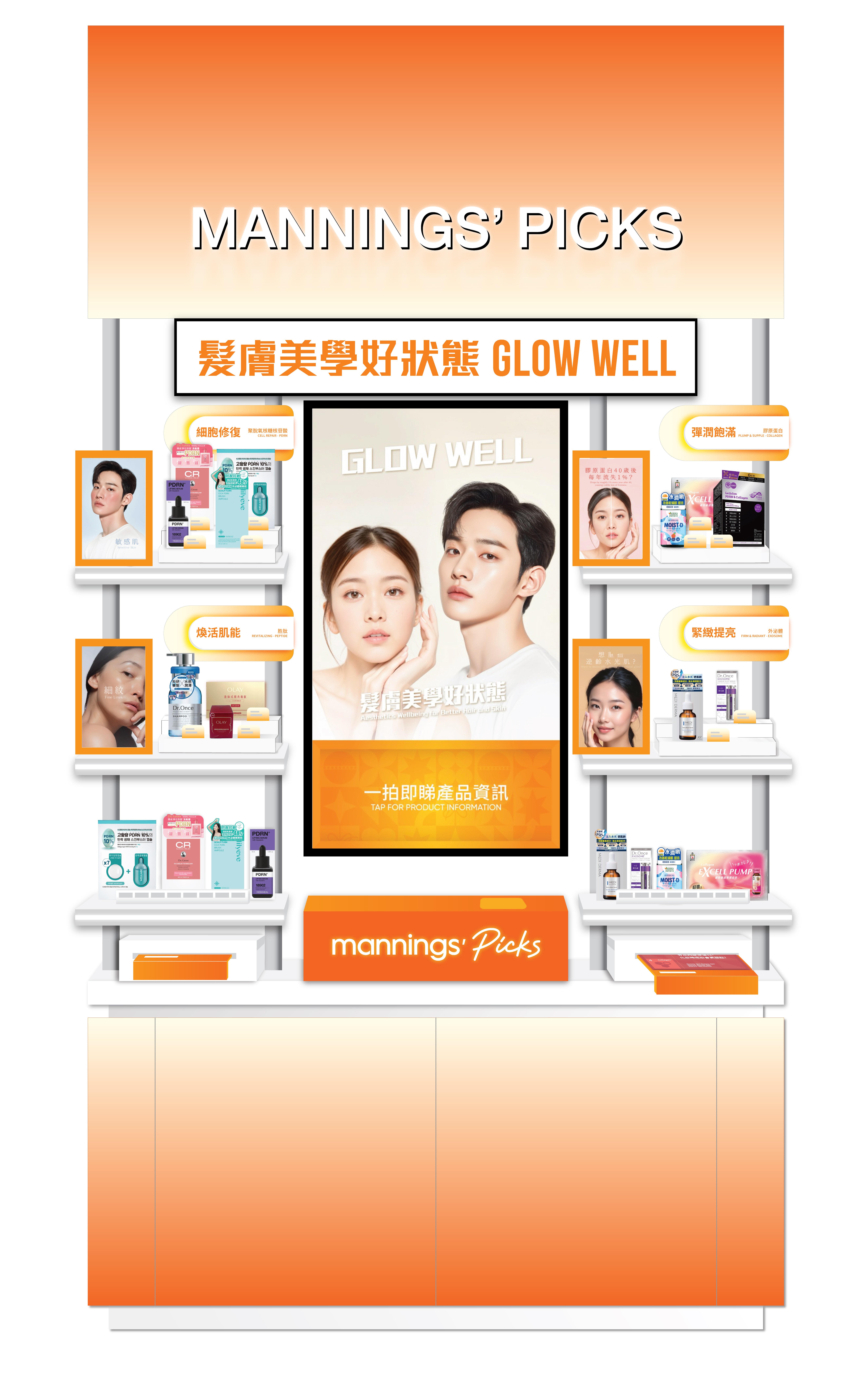 Mannings is Hong Kong's largest health and beauty retailer, recently revamping its ifc flagship store to emphasize AI-driven personalization and holistic wellness. A standout feature of this new retail experience is the Mannings' Picks interactive zone, which showcases a curated selection of trending beauty, personal care, and health products. This installation leverages NFC (Near Field Communication) technology to bridge the physical and digital shopping worlds; when a customer places a product on a designated sensor, an interactive screen instantly displays comprehensive product details and benefits.